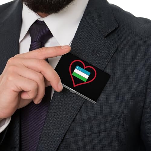 I Love Uzbekistan Red Heart Business Card Holder Slim Credit Case Pocket Name Case Wallet for Men Women 1