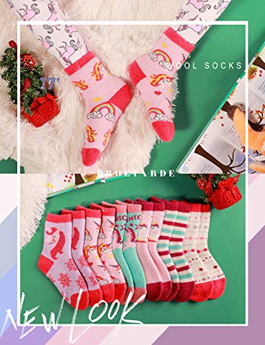 ProEtrade Merino Wool Socks for Kids Toddlers Boys Girls Thick Thermal Warm Winter Hiking Heavy Cozy Crew Socks 6 Pack 6