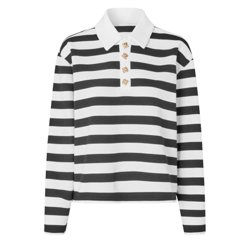 • Material: Women striped long sleeve polo shirt made of 100% Polyester, lightweight sweatshirt for women, breathable and soft texture.Women y2k striped shirt, preppy style stripe rugby shirts
