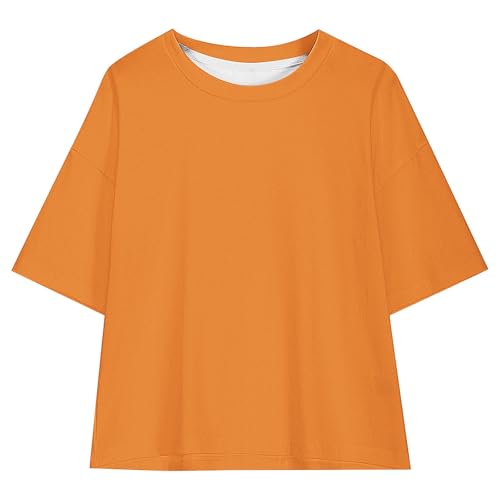 • Feature: Girls summer tshirts, crew neck basic tees, the dropped shoulder design adds a slouch touch, relaxed fit, solid color never out of style and go well with everything.
