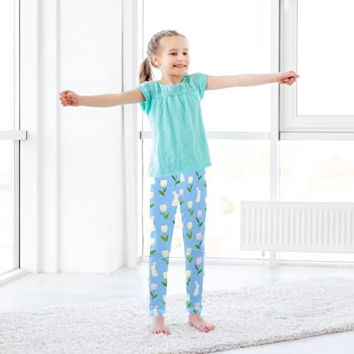 ALAZA Girls' Leggings Children's Yoga Pants Skinny Printed Dance Tulip Rabbit Blue Comfortable 4T 6