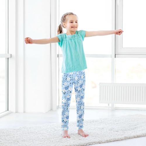 Wusikd Blue Floral Girls' Leggings Toddler Doodles Kids Yoga Pants Dance Active Tights 4T 6