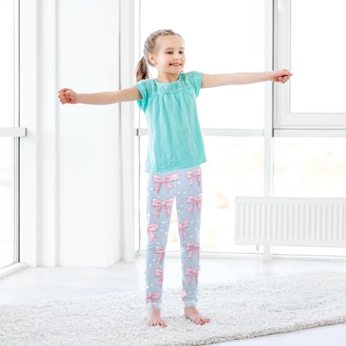 Wusikd Cute Pink Bows Girls' Leggings Toddler Doodles Ribbons Kids Yoga Pants Dance Active Tights 4T 7