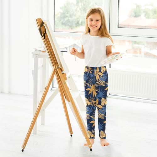 KLL Blue and Yellow Theme Plants Hawaiian Little Girls Cotton Leggings Comfortable Full Length Sweatpants Sports 7