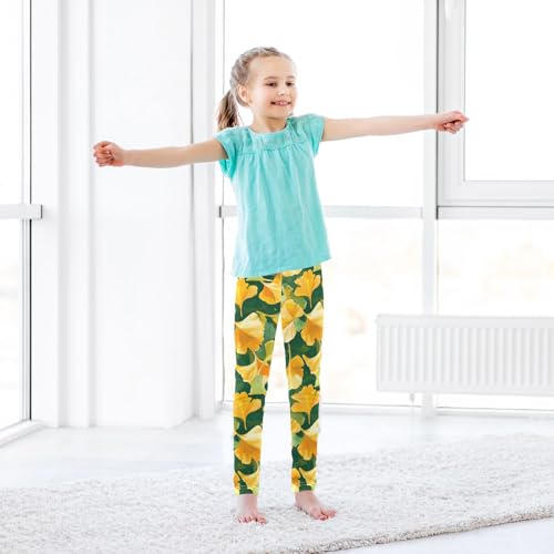 KLL Ginkgo Leaves Girls Active Leggings Comfortable Full Length Workout Pants Sports 7