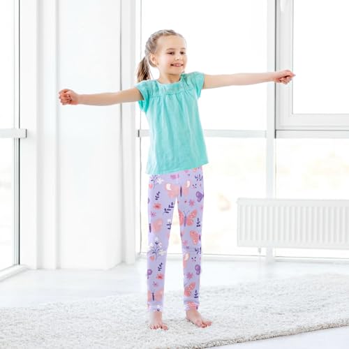 Butterflies Girls' Leggings Toddler Doodles Flowers Purple Kids Yoga Pants Dance Active Tights 4T 5