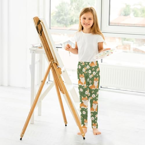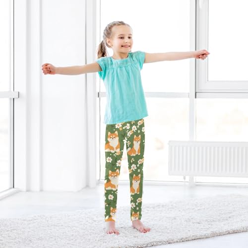 Cute Shiba Inu Girls Leggings,Workout Leggings for Girls Toddler Athletic Leggings Size for 3-10T 4