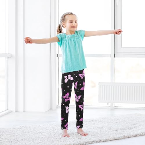 Pink Butterfly on Dark Girls Leggings,Workout Leggings for Girls Toddler Athletic Leggings Size for 3-10T 3