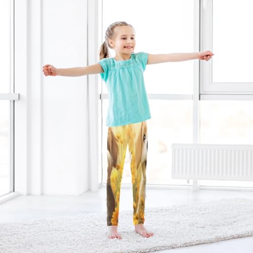 Bolaz Toddler Girls Leggings Printed Yoga Pants Leggings Sunflower Dog for Kids 7
