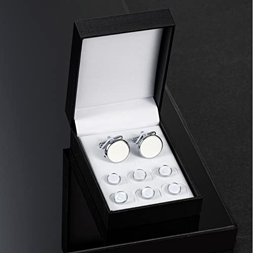 UJOY Mens Mother of Pearl Cufflinks and Studs Tuxedo Bottons Set Presentation Box Business Dress Parts for Wedding Party 3