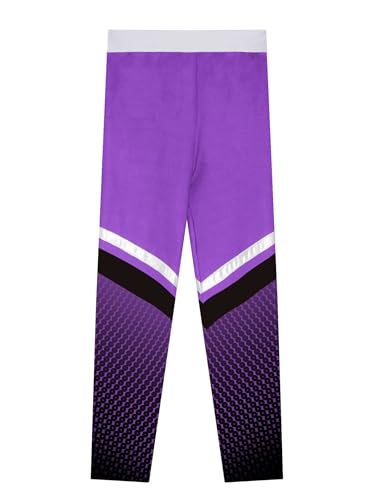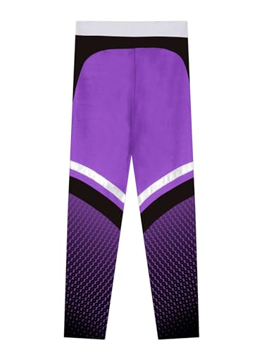 Kids Girls Gradient Dots Printed Figure Skating Pants Color Block Fleece-Lined Ice Skating Leggings 7