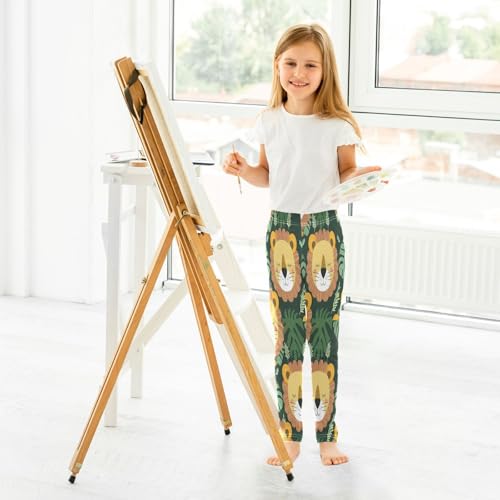 Toddler Girls Leggings Printed Yoga Pants Leggings Green Leaves Lion Heads for Kids 6