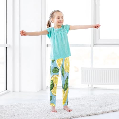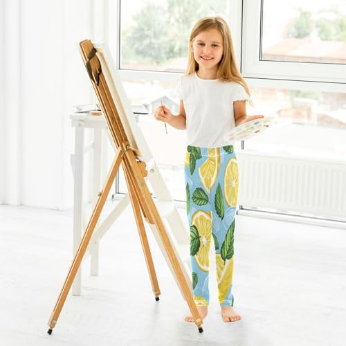 Bolaz Toddler Girls Leggings Printed Yoga Pants Leggings Lemon Mint Leaves for Kids 4