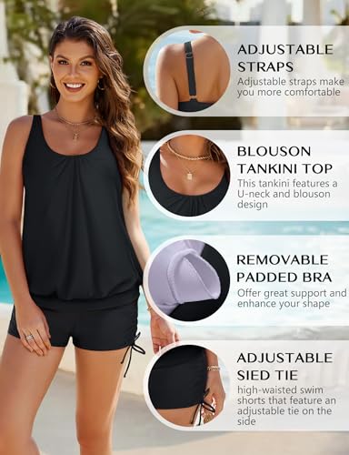 Tankini Swimsuits Womens 3 Piece Swimsuit with Tank Top Tummy Control Boyshorts Sports Bra Bathing Swim Suit 2025 1