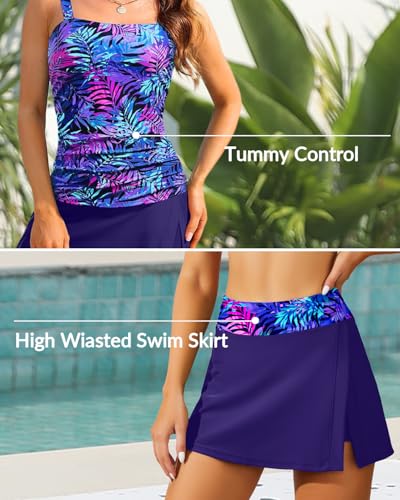 Womens Two Piece Tankini Bathing Suits with Skirt Tummy Control Swimsuits Ladies Swimwear 5