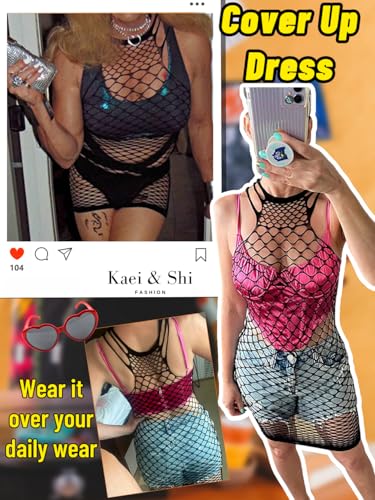 More information about Kaei&Shi Sexy Beach Cover Up,Racerback Hollow Out Fishnet Dress for Women,Sheer Mesh Bathing Suit Coverup Rave Festival