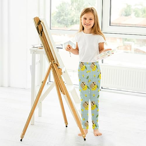 Wusikd Sloth Girls' Leggings Toddler Doodles Lemon Kids Yoga Pants Dance Active Tights 7-8T 7