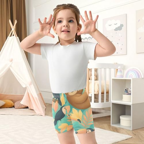 HOT ! Toddler Biker Shorts for Girls Cotton Shorts for Under Dresses 4t Dance Clothes Cute Sloth Toucan Colorful Tropical