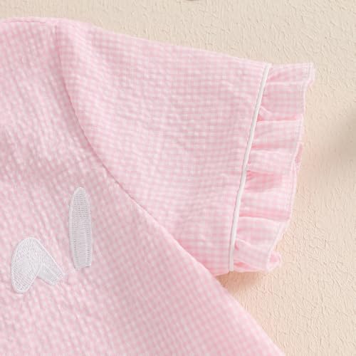 Multitrust Kids Baby Girl Easter Day Pajamas Set Plaid Bunny Carrot Button Down Shirts Ruffled Shorts Girls 2PCS Pj Set 4