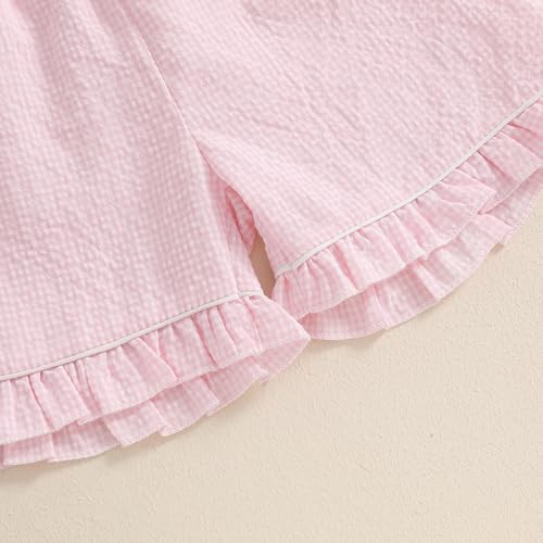 Multitrust Kids Baby Girl Easter Day Pajamas Set Plaid Bunny Carrot Button Down Shirts Ruffled Shorts Girls 2PCS Pj Set 6
