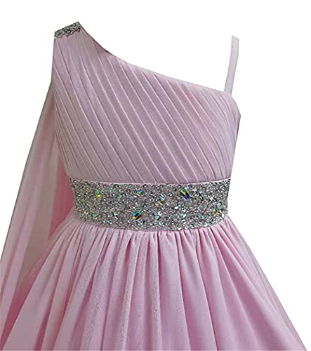 HOT ! Junguan Girls One Shoulder Pageant Dress Chiffon Princess Kids Birthday Party Gowns with Flowy Cape 14 Fuchsia