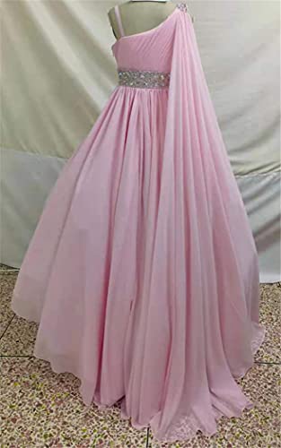 Junguan Girls One Shoulder Pageant Dress Chiffon Princess Kids Birthday Party Gowns with Flowy Cape 14 Fuchsia 6