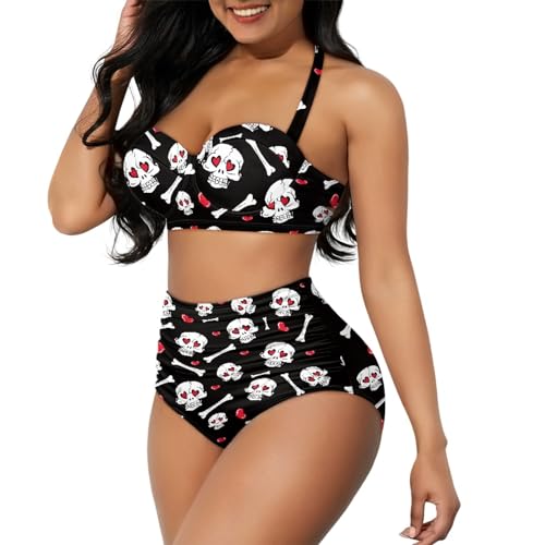 Yuuxorilu Women Two Piece High Waist Bikini Set Halter Ruched High Waist Bikini with Bottom 1