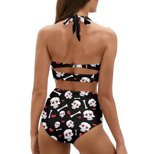 Yuuxorilu Women Two Piece High Waist Bikini Set Halter Ruched High Waist Bikini with Bottom 2
