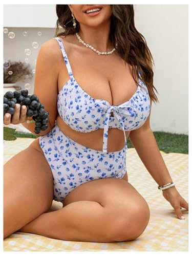 • Features: Plus size swimsuit for curvy women, floral print, tie front, high waisted, two piece bathing suit