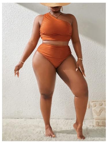 HOT ! SweatyRocks Women's Plus Size 2 Piece Ruched One Shoulder High Waisted Tankini Swimsuit Bathing Suit