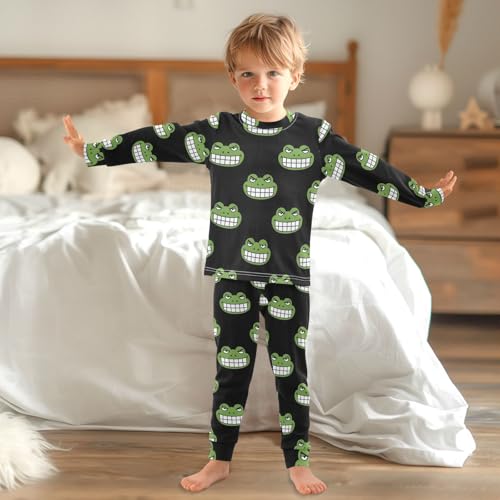 Pajama Sets Long Sleeve Green Frog Faces Pattern Soft Comfy Sleepwear 2 Piece PJS 3-8T 2