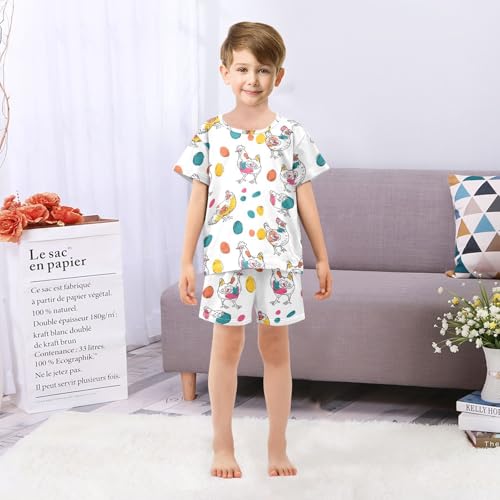 Chicken Egg Pattern Pajama Set, Short Sleeve Cotton Sleepwear Nightwear 3