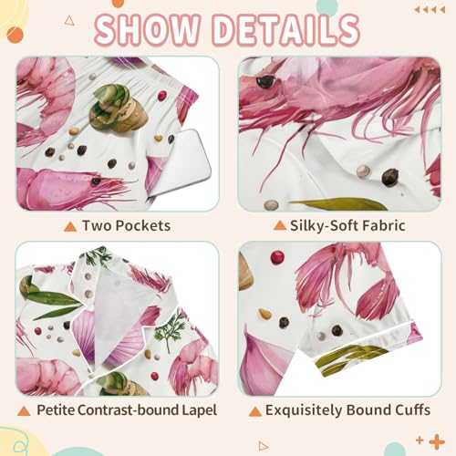 Satin Pajama Sets Short Sleeve Seafood Pattern with Lobster Button Down Silky Nightwear 2 Piece PJS 5-14Y 1