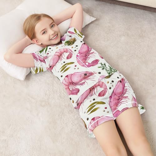Satin Pajama Sets Short Sleeve Seafood Pattern with Lobster Button Down Silky Nightwear 2 Piece PJS 5-14Y 7