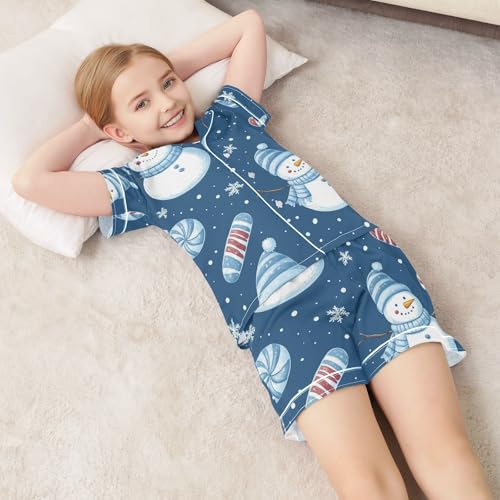 Satin Pajama Sets Short Sleeve Snowman Candy Cane Snowflakes Button Down Silky Nightwear 2 Piece PJS 5-14Y 1