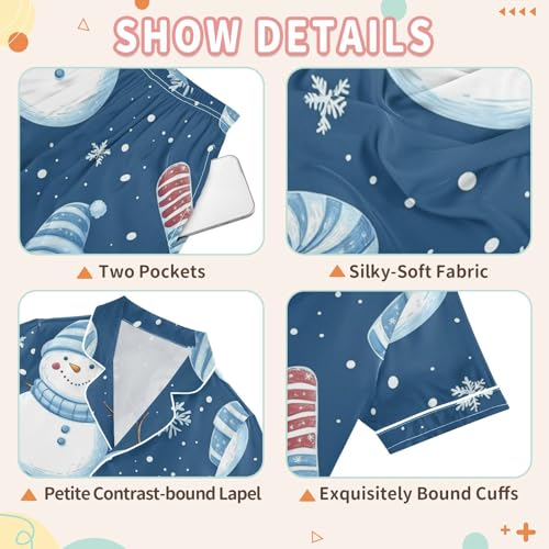 More information about Satin Pajama Sets Short Sleeve Snowman Candy Cane Snowflakes Button Down Silky Nightwear 2 Piece PJS 5-14Y
