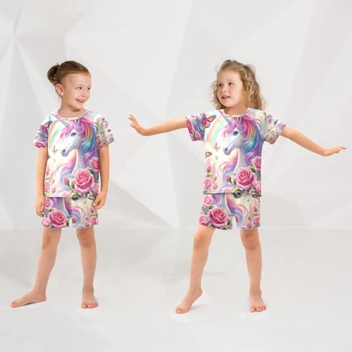 Unicorns Butterfly Pinkish Pajama Set Short Sleeve Pajamas Shorts Sets Cotton PJS 2 Piece Clothes Set 5Y 5