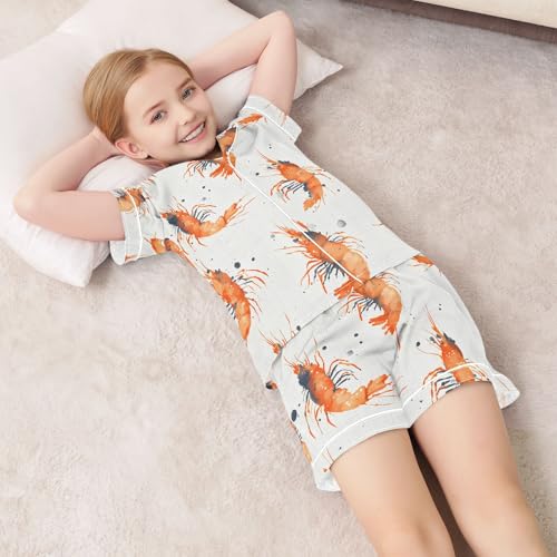 HOT ! ALAZA Lobster Watercolor Satin Pajamas Set Short Sleeve Button Down Sleepwear Summer Pjs 2 Piece