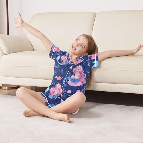 More information about ALAZA Beautiful Mermaid Coral Reef Bubble Satin Pajamas Set Short Sleeve Button Down Sleepwear Summer Pjs 2 Piece