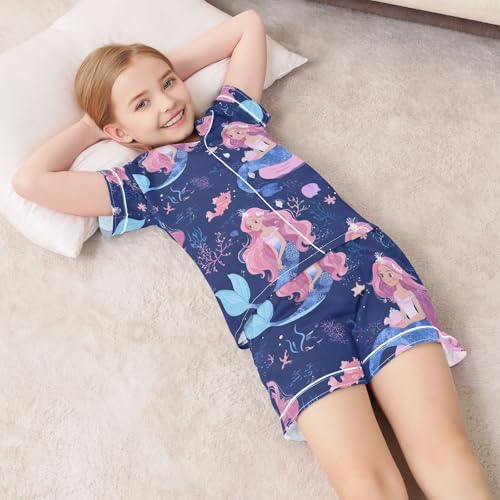 ALAZA Beautiful Mermaid Coral Reef Bubble Satin Pajamas Set Short Sleeve Button Down Sleepwear Summer Pjs 2 Piece 1
