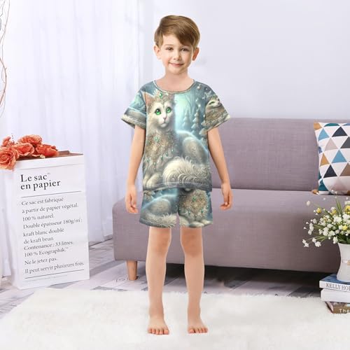 More information about Winter Cat Christmas Trees Cute Pajama Set Short Sleeve Pajamas Shorts Sets Cotton Soft Loungewear Sleepwear 5Y