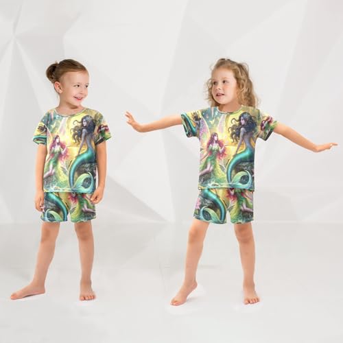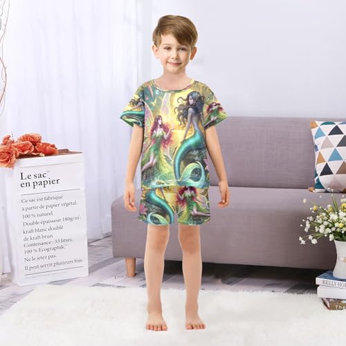 Fairy Mermaid Pajama Set Short Sleeve Pajamas Shorts Sets Cotton PJS 2 Piece Clothes Set 5Y 5
