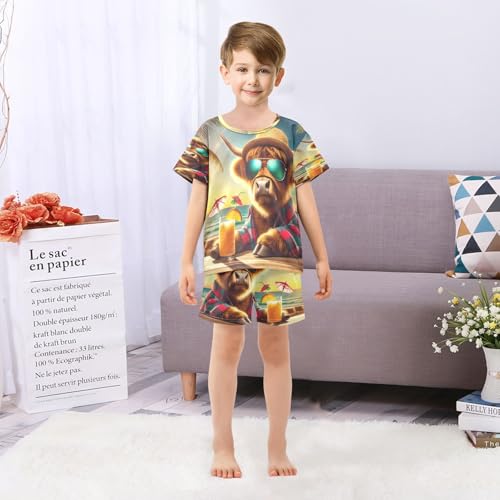 Highland Cow Beach Summer Pajama Set Short Sleeve Sleepwear Soft Pajamas Shorts Sets Cotton PJS 5Y 5