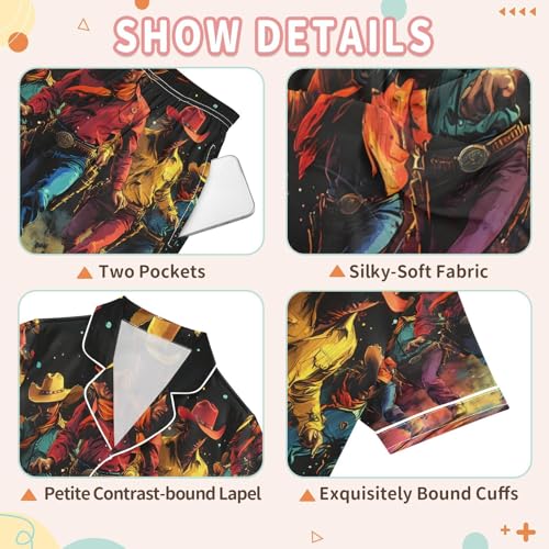ALAZA Colorful Cowboy Dance Satin Pajamas Set Short Sleeve Button Down Sleepwear Summer Pjs 2 Piece 7