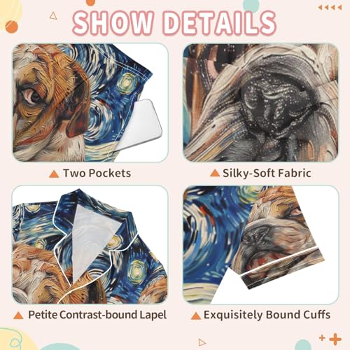 More information about ALAZA Van Gogh Starry Sky Bulldog Satin Pajamas Set Short Sleeve Button Down Sleepwear Summer Pjs 2 Piece