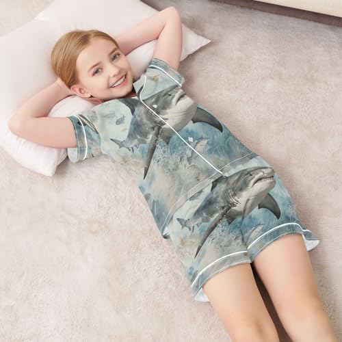 More information about ALAZA Shark Flying Satin Pajamas Set Short Sleeve Button Down Sleepwear Summer Pjs 2 Piece