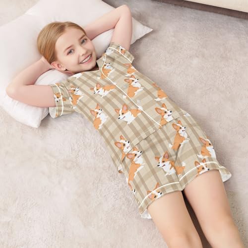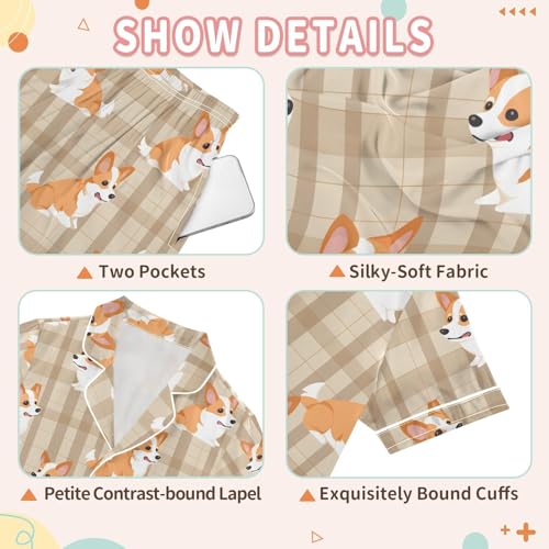 ALAZA Plaid Check Puppy Dog Satin Pajamas Set Short Sleeve Button Down Sleepwear Summer Pjs 2 Piece 6