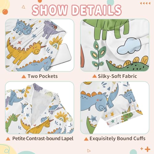 ALAZA Unicorn Dinosaur Print Pajamas Satin Pajama Set Short Sleeve Button Down Sleepwear 3