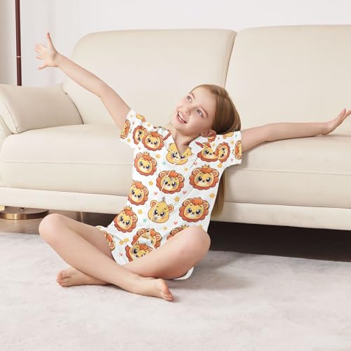 ALAZA Cute Cartoon Lion Star Pajamas Satin Pajama Set Short Sleeve Button Down Sleepwear 3