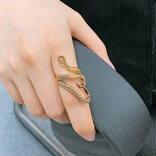 U7 Statement Rings for Women,Adjustable Leaf/Octopus/Snake Rings,Dainty Cocktail Party Jewelry 3